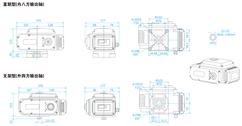3、直聯(lián)型安裝時(shí),由于孔深小于18mm,如果閥門的輸出軸大于18mm則需要切割。