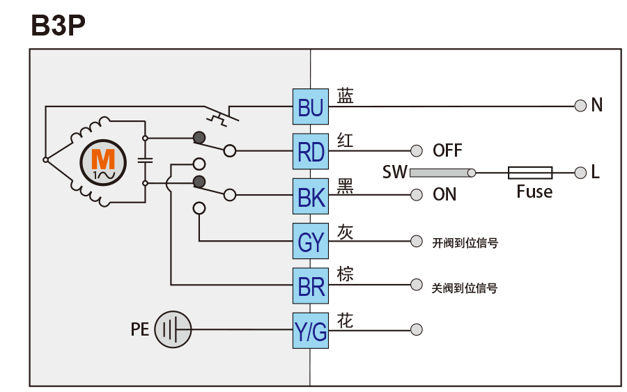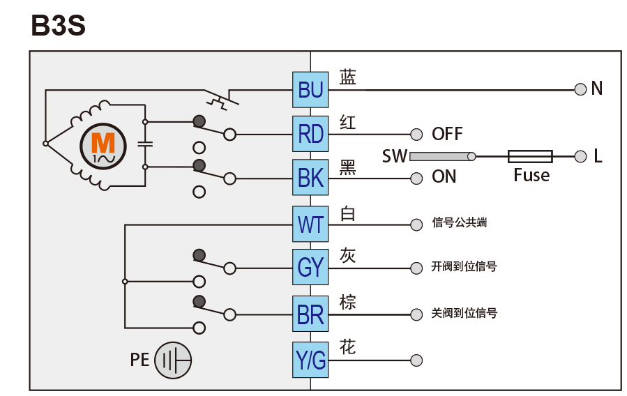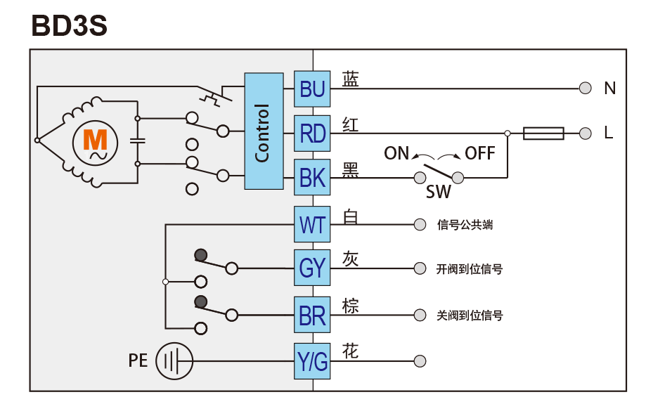 SW斷開,電動(dòng)執(zhí)行器將順時(shí)針旋轉(zhuǎn),到位后WT與BR接通,給出關(guān)閥到位信號(hào)。