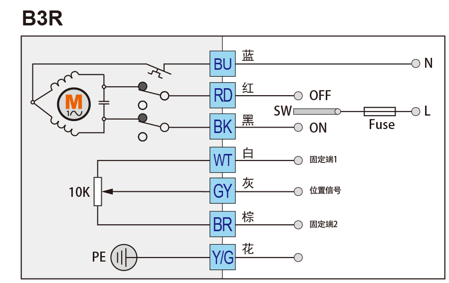 注1:執(zhí)行器運(yùn)行中RD與 BR 、 BK與 GY都處于斷開狀態(tài)。